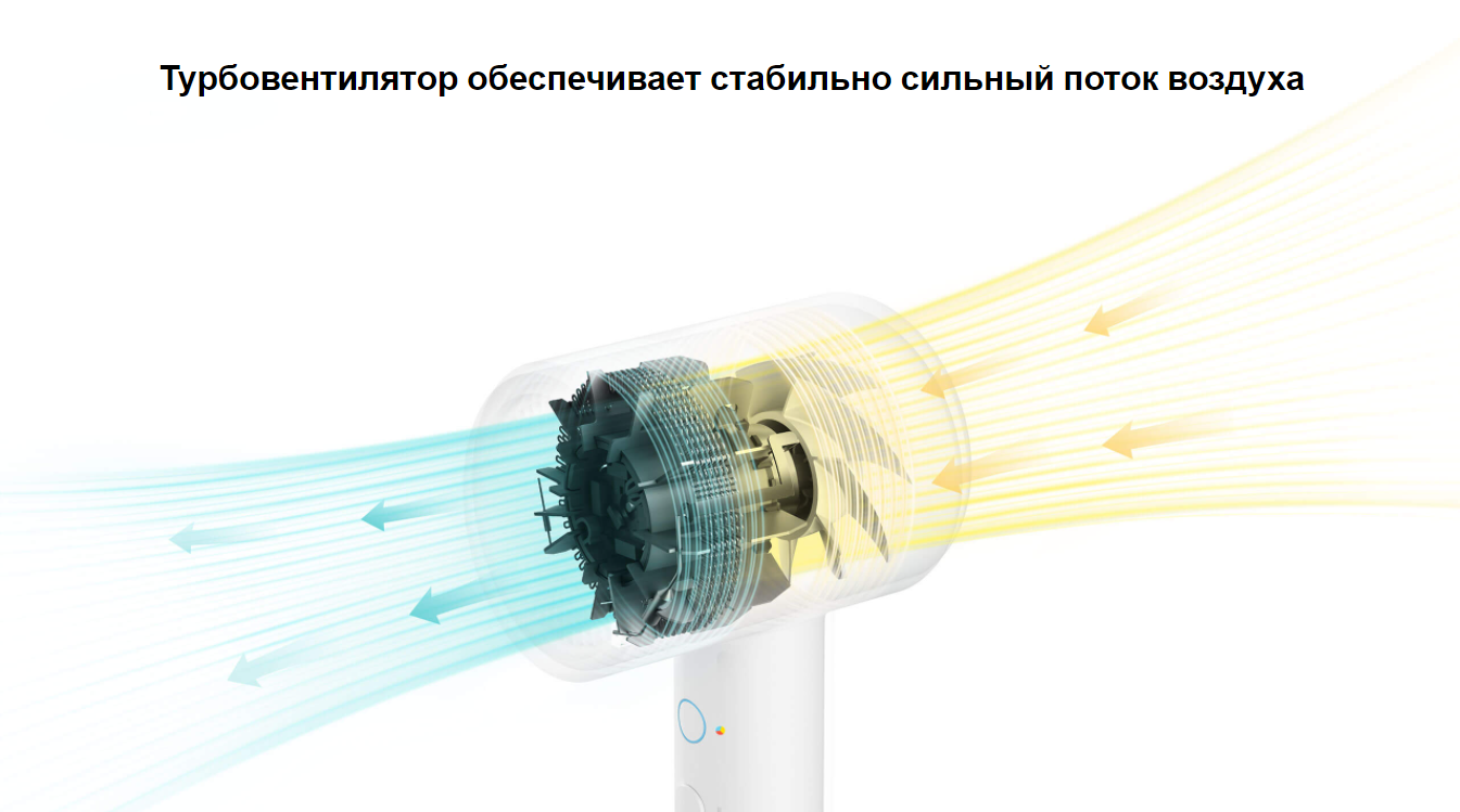 Турбовентилятор обеспечивает стабильно сильный поток воздуха