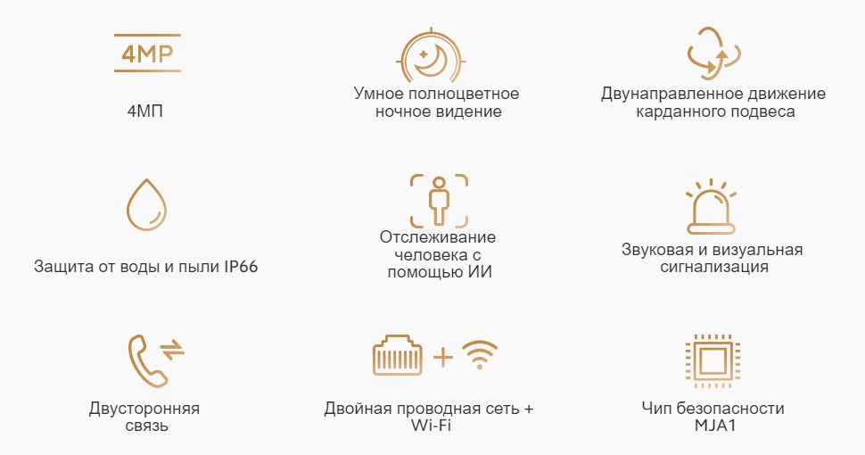 Камера оснащена встроенным высокочувствительным микрофоном и высококачественным мощным динамиком, усиленным алгоритмом шумоподавления AI. Большой диапазон захвата обеспечивает громкий и чистый звук даже в сложных наружных условиях.
