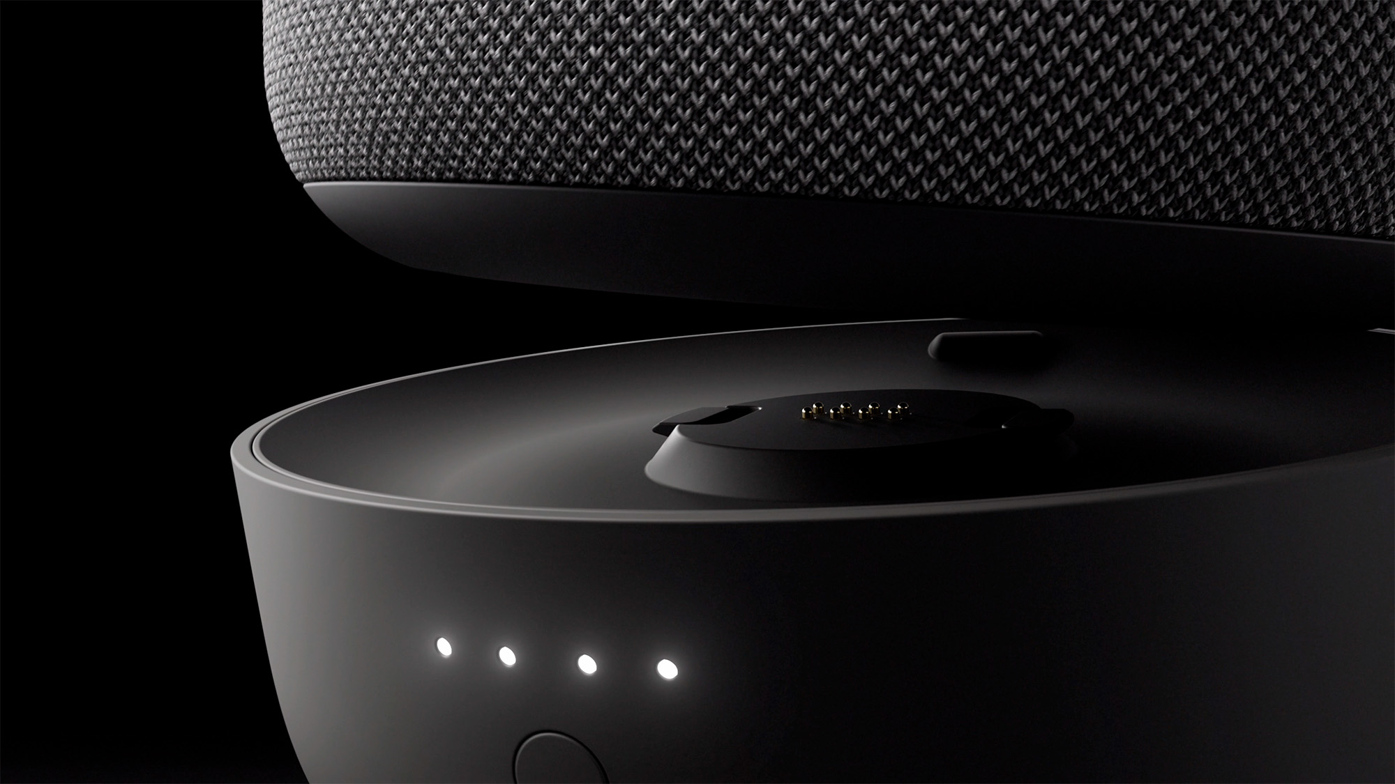Аккумулятор крепится к станции с помощью магнитного соединения — никаких проводов, всё просто и надёжно. На корпусе есть кнопка и светодиодный индикатор, который показывает уровень заряда. Узнать оставшуюся ёмкость можно и через приложение «Дом с Алисой», либо голосом — просто спросив у ассистента: «Алиса, какой заряд?».