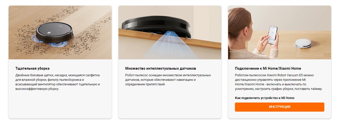 | Другие функции и возможности | голосовое управление, автоматическое возвращение на зарядную станцию, голосовое управление через ассистентов |