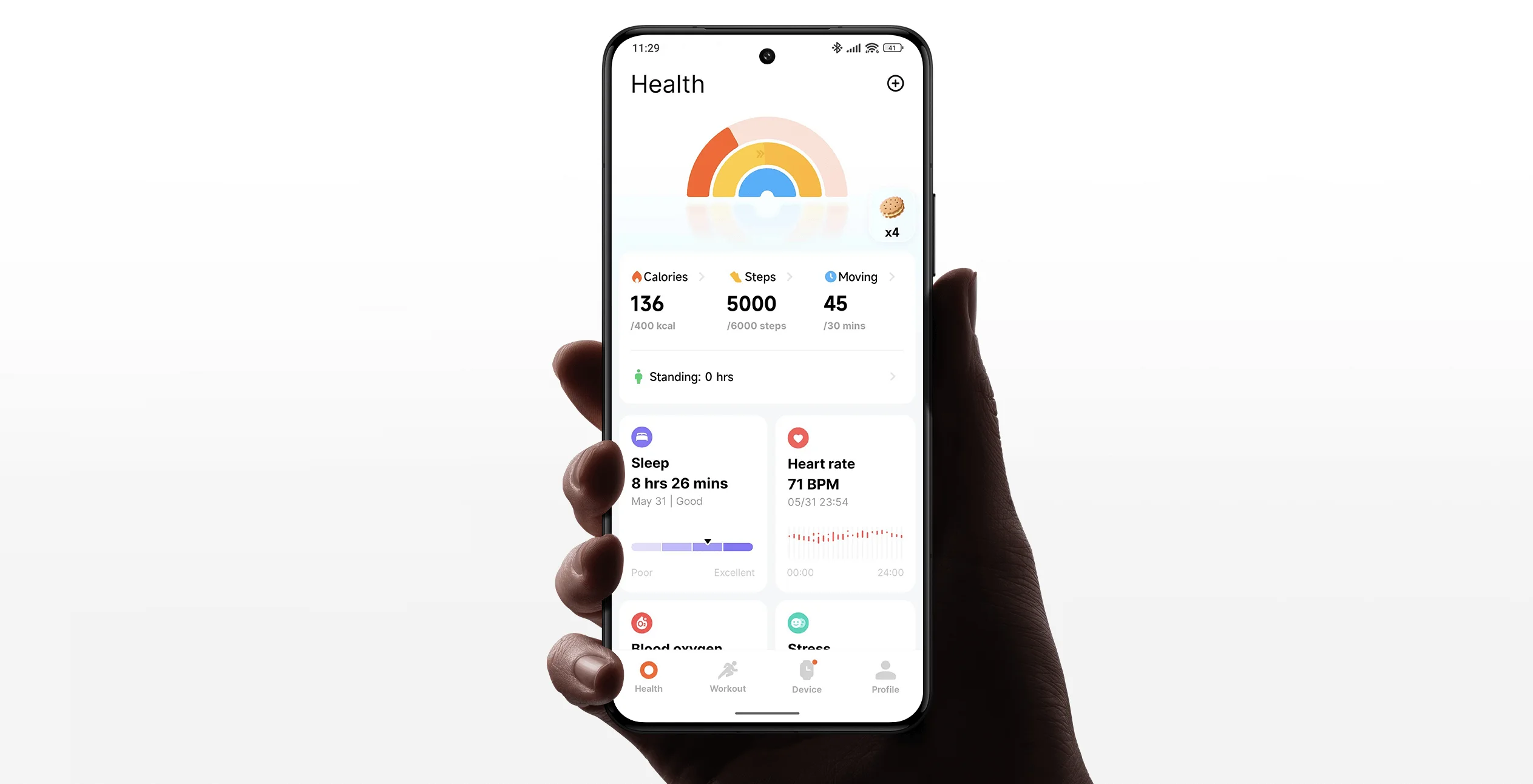 Измеренияколичество шагов, пройденное расстояние, мониторинг сна, уровень кислорода в крови, уровень стресса и восстановление